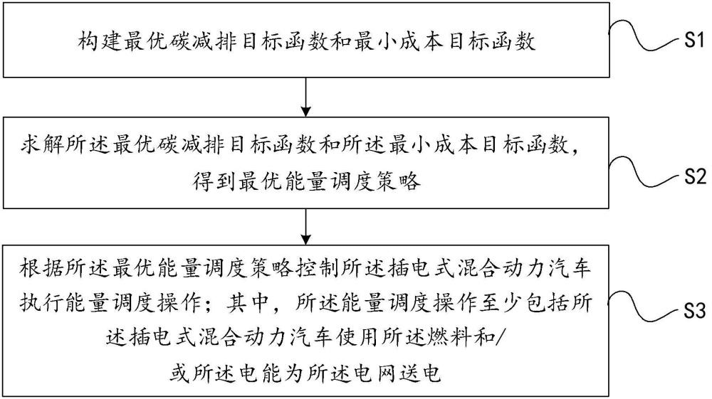 摘要:本发明公开一种基于V2G的能量调度方法、装置、设备、存储介质及产品,在V2G能量调度场景下,通过考虑插电式混合动力汽车在回程过程中所消耗的燃料的碳排放量、回程过程中所消耗的电能的碳排放量、插电式混合动力汽车与电网进行能量调度时所消耗的燃料的碳排放量以及将电能送回电网所产生的碳排放量、回程过程中所消耗的所述燃料的成本以及插电式混合动力汽车与电网进行电能交换时所消耗的成本等因素,来构建最优碳减排目标函数和最小成本目标函数;通过对多目标函数进行求解,来得到最优能量调度策略,以用于控制插电式混合动力汽车基于燃料和/或电能执行能量调度操作,有效地降低了V2G模式下能量调度的碳排放量,有利于环境保护。