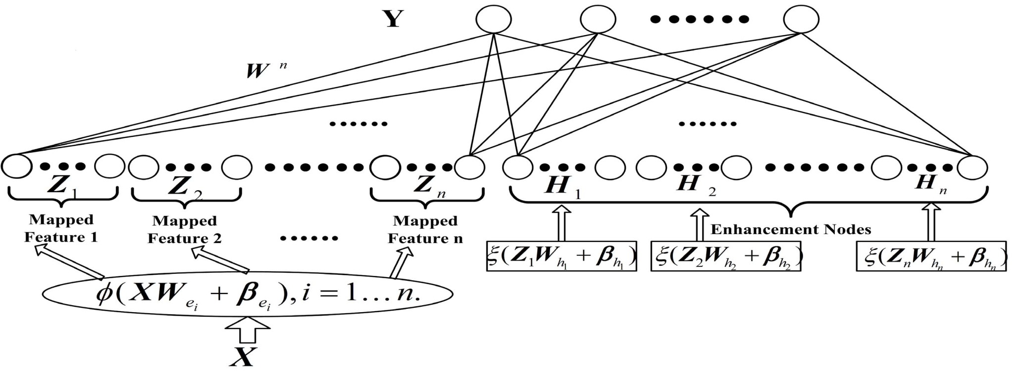 宽度学习系统选择了一条不同的路径——不纵向深入,而是横向扩展。它在同一层网络结构里,平行地建立多个特征映射和增强节点,就像在一条高速公路上增加多条车道,让信息同时并行处理。更重要的是,其学习过程非常高效:接收输入数据后,先通过特征层得到映射特征,再计算增强层的输出,并将这两部分特征合并成一个矩阵;通过计算这个矩阵的广义逆,就能一步求出输出层的权重。由于训练不依赖反复迭代的反向传播,宽度学习的建模时间大幅缩短。