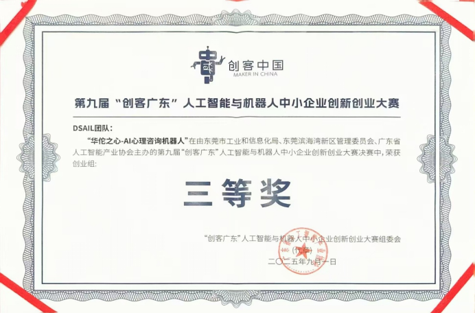 琶洲实验室概念验证中心赋能:“DS-华佗之心”AI心理咨询机器人获“创客广东”三等奖
