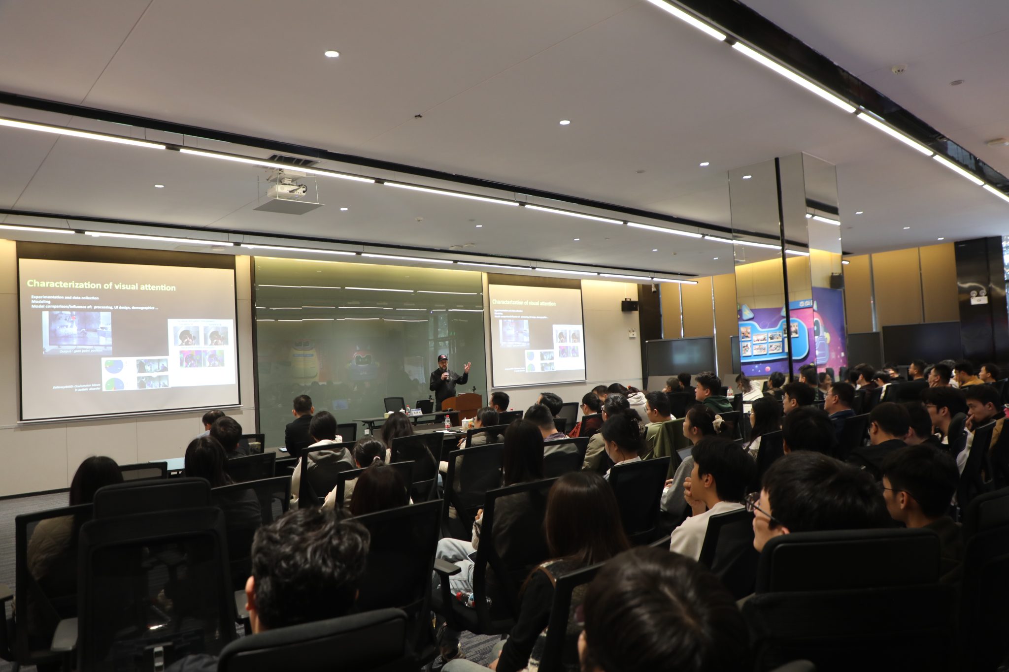 Patrick教授致力于多媒体、认知计算与体验质量(QoE)的研究。报告会上,Patrick教授展示了他在视觉注意力方面的一系列研究成果。他展示了生物系统和人工系统如何应对视觉注意力的挑战,并重点阐述了神经科学与计算机视觉在该方面的趋同性与差异。Patrick教授指出,从神经科学的角度来看,视觉注意力是指人类视觉系统在复杂环境中筛选并优先处理相关信息的机制。这些机制既包括受刺激显著性驱动的自下而上过程,也包括受任务、记忆和期望引导的自上而下过程。而从计算机视觉的角度来看,注意力则是通过具有不同目标的多种计算框架来进行建模的。