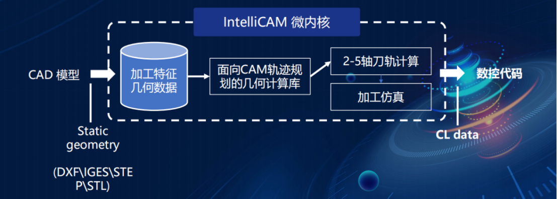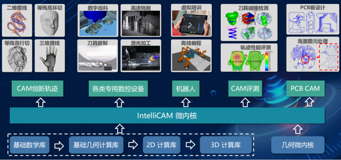 王清辉团队长期从事工业软件CAM核心算法与应用技术研究,坚持十余年研制的“IntelliCAM”微内核,自带小型几何内核,可支持加工特征识别、2-5轴数控轨迹规划、加工干涉检查、加工仿真。该内核具有自主知识产权,可为各类CAD/CAM系统、专用数控编程系统、机器人离线编程与仿真系统提供CAM轨迹规划与加工仿真功能。
