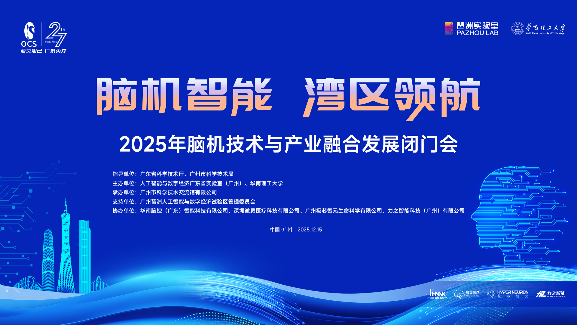 12月15日,由广东省科学技术厅、广州市科学技术局指导,琶洲实验室和华南理工大学共同主办的“脑机智能,湾区领航”——2025年脑机技术与产业融合发展闭门会(下……